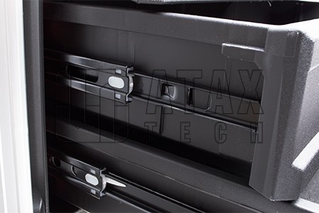 Box je opatřen třemi zásuvkami s kovovým pojezdem a centrálním ukamykáním. Zásuvku je možné zozdělit na menší boxy pro ukládání drobností. Jako všechny boxy, i tento je vodě odolný.