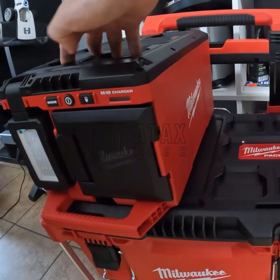 Neocenitelnou výhodou svítidla M18 POALC je jeho hybridní provedení. Díky vestavěné nabíječce můžete při použití sítě 230V nabíjet 18V akumulátory. Svítidlo je použitelné jak v systému Packout a i samostatně. Bonusem je pak USB konektor pro napájení různých spotřebičů.