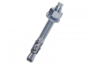 Expanzní ocelová průvleková kotva pro těžká kotvení do betonu a kamene. Nepoužívat v dutinových materiálech! Nezaměňujte tento druh pevnostní kotvy s plechovými výrobky, které mají podstatně tenší stěnu pláště, a proto se v otvoru méně roztahují a mají i menší nosnosti. Používejte bezpečnostní koeficient alespoň 3. Tzn., výtažnou hodnotu dělte třemi. Mějte na paměti, že ocelové kotvy se používají i na místech, kde je pohyb lidí.